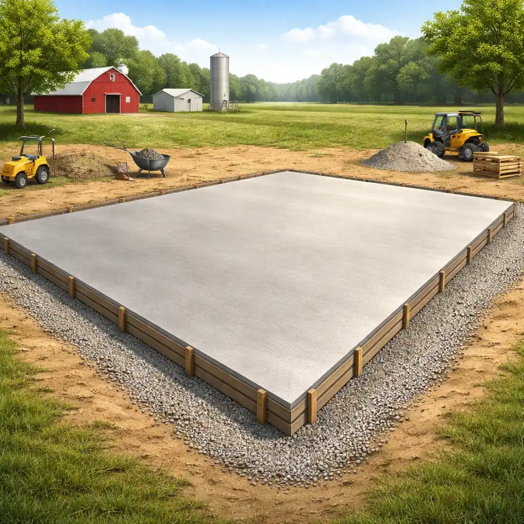A patio slab, driveway slab, garage floor, and utility pad may all need different slab thickness depending on load and intended use.